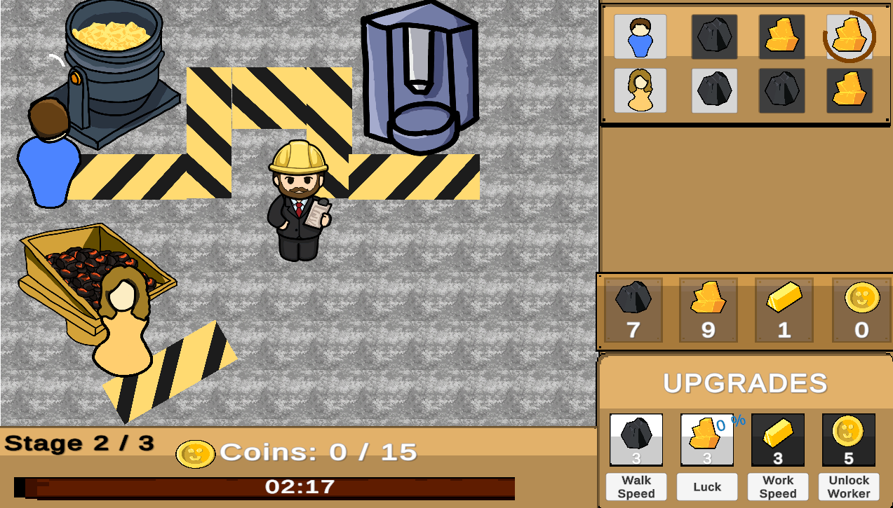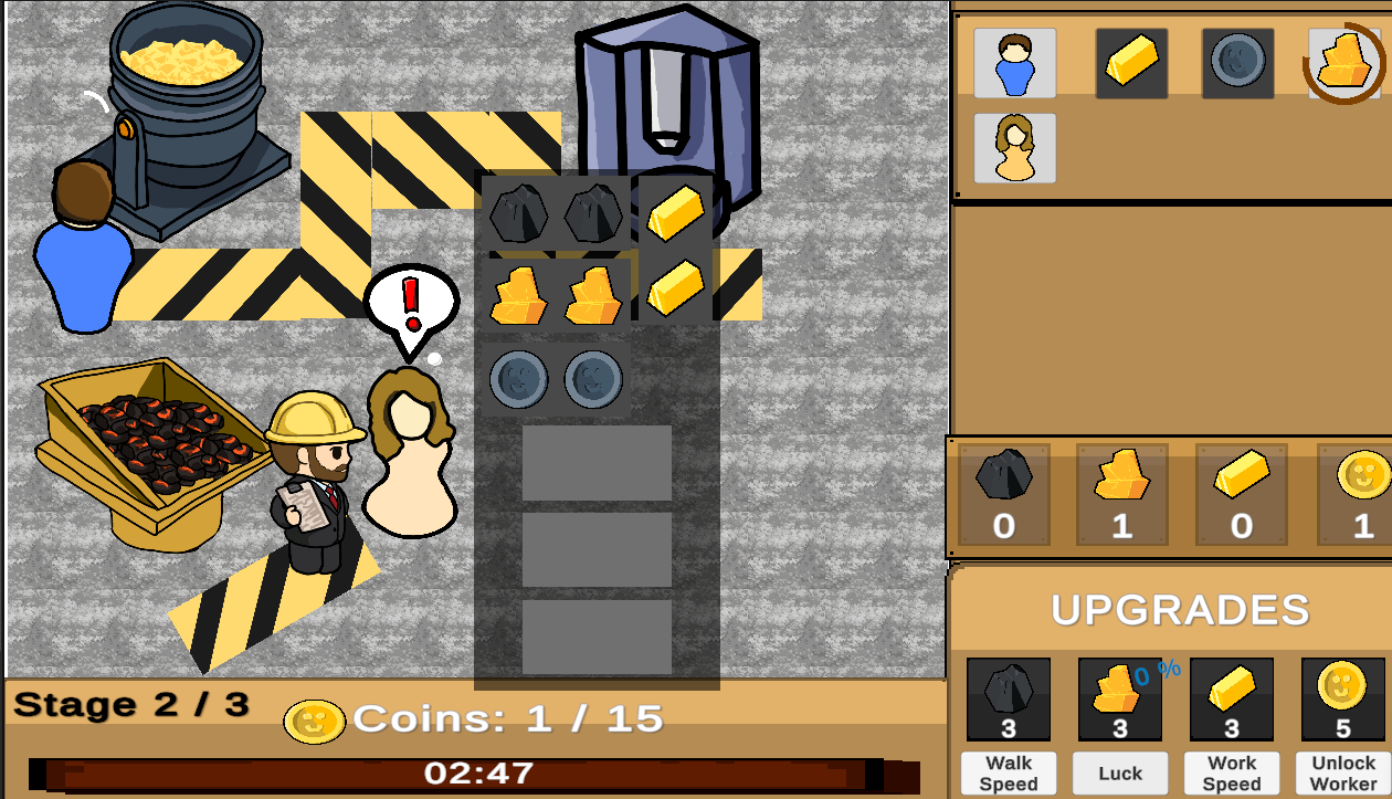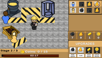 Instructions: Manage employees schedule to efficiently produce coins, trying to meet the deadline before time runs out.